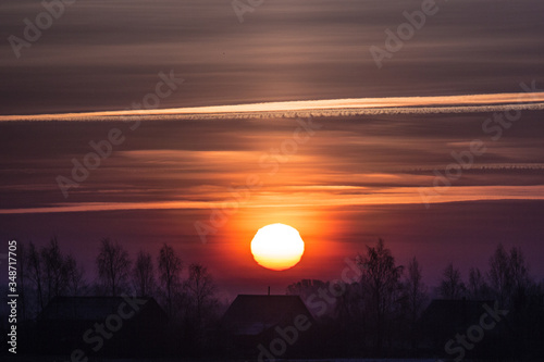 © Markel, Fototapeta premium Sunset in a cold winter evening over a meadow
