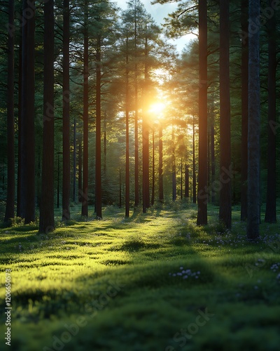 © Joe, Fototapeta premium Sunset in a pine forest.