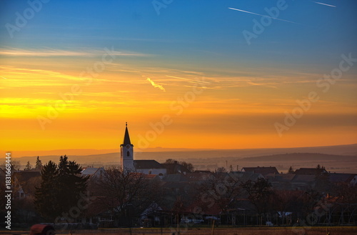 © Ferenc, Fototapeta premium Sunset in a small village in Bakony