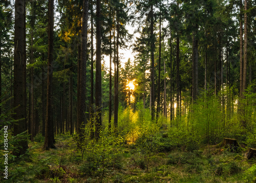 © wlad074, Obraz premium Sunset in a spring forest in Germany