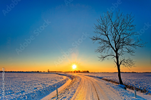 © pwollinga, Fototapeta premium Sunset in a white winter landscape
