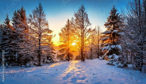 © RR 27, Naklejka premium Sunset in a winter forest.