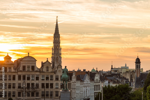 Naklejka premium Sunset in Brussels, capital of Belgium as seen from Mont des Arts garden