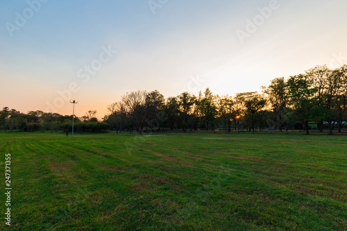 © themorningglory, Fototapeta premium Sunset in city public park with tree