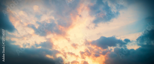 © Acronym, Obraz premium Sunset in clouds. Beautiful aerial view of heaven.