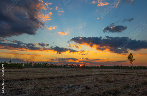 Obraz premium Sunset in Isan Village, north east Thailand, Asia