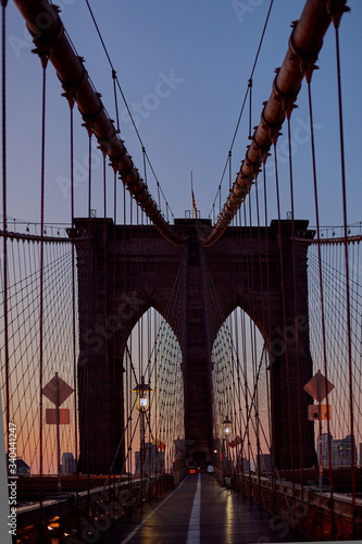 Obraz premium Sunset in middle of Brooklyn Bridge in New York