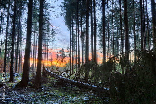 © Andreas Krappweis, Obraz premium Sunset in snowy Spruce Forest