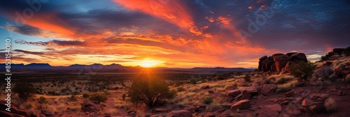 © Brian, Fototapeta premium Sunset in the Arizona desert landscape - wide banner of the natural arid environment