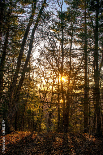 © Tishina, Fototapeta premium Sunset in the autumn forest