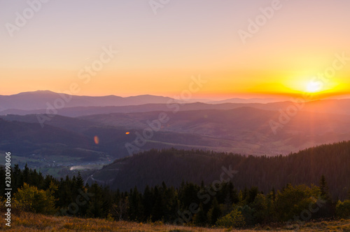 Fototapeta premium Sunset in the Carpathian Mountains in the autumn season