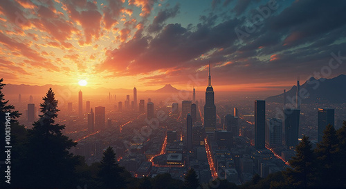 © niji, Fototapeta premium sunset in the city