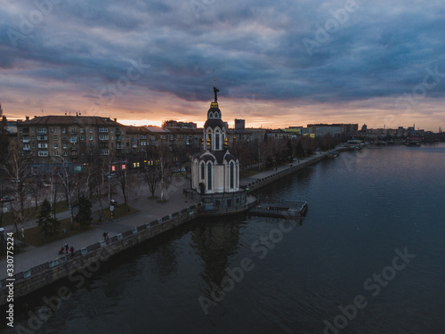 © Denis Chubchenko, Fototapeta premium закат в городе с высоты, sunset in the city from above