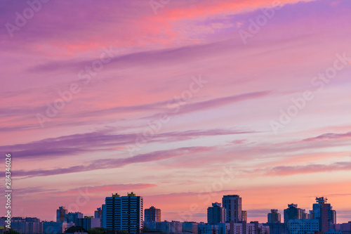 © Анастасия Семашко, Fototapeta premium Sunset in the city, sky with clouds
