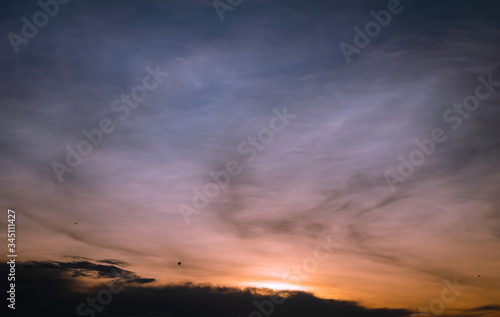 Fototapeta premium Sunset in the clouds in the form of tracks Sunset light Clouds in the form of...