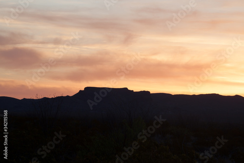 © Allen Penton, Obraz premium Sunset in the desert with mountains