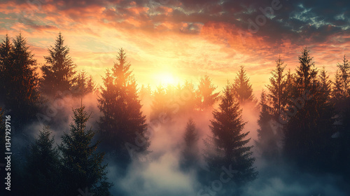 © novri, Obraz premium sunset in the forest
