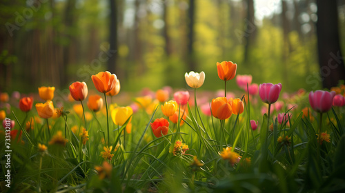 Fototapeta premium Sunset in the garden. AI generated art illustration.