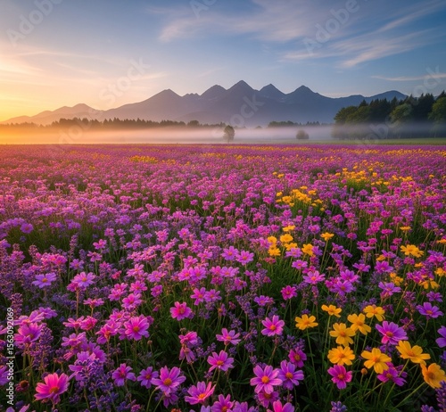 © AURA, Obraz premium sunset in the mountains