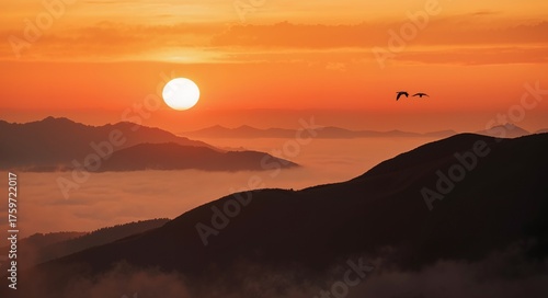 © 远健 谢, Obraz premium sunset in the mountains
