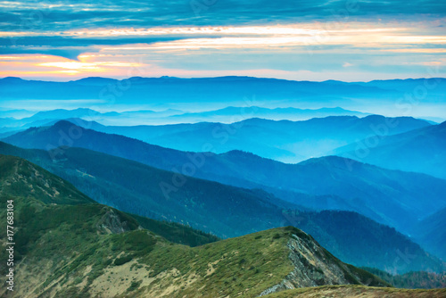 © Pavlo Vakhrushev, Fototapeta premium Sunset in the mountains