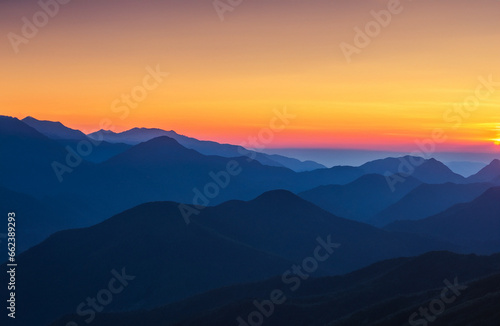 © Katharine, Fototapeta premium sunset in the mountains