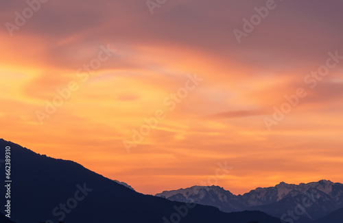 © Katharine, Fototapeta premium sunset in the mountains