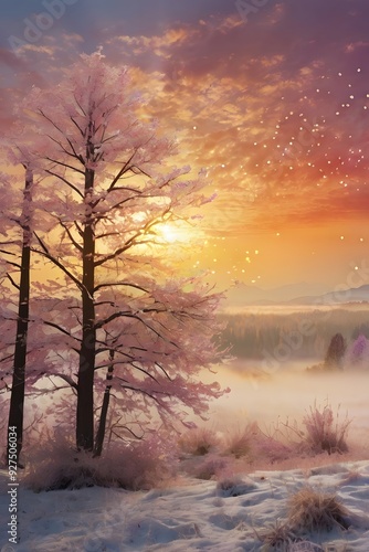 © Hansini, Obraz premium sunset in the mountains