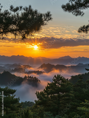 © CLEMERSONDESALES, Naklejka premium sunset in the mountains