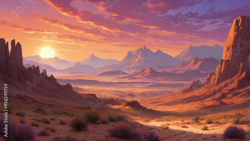 © VitorCosta, Naklejka premium sunset in the mountains, ai generated