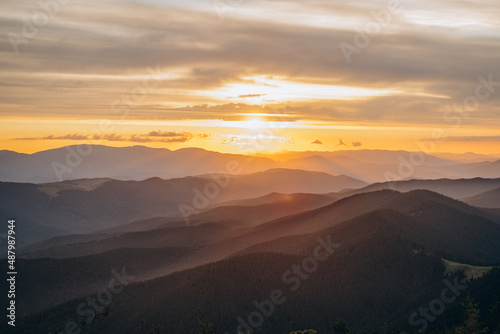 © Sofiia, Fototapeta premium sunset in the mountains, carpathian mountains