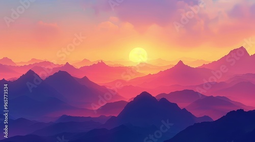 © wicha, Fototapeta premium Sunset in the mountains is a sight to behold.