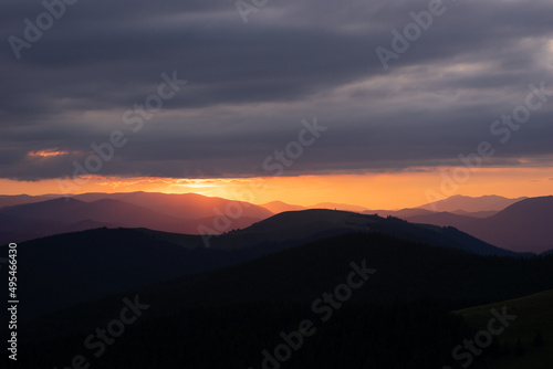 © Aleksandr, Fototapeta premium sunset in the mountains Ukraine Carpathians
