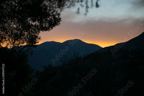 © Alyssa, Obraz premium sunset in the mountains with tree in foreground