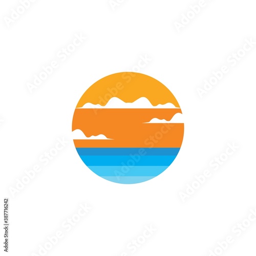 © sangidan, Fototapeta premium sunset in the sea icon vector illustration design