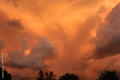 © Stockphotoman, Fototapeta premium sunset in the sky that's bright and colorful over Hutchinson Kansas USA.