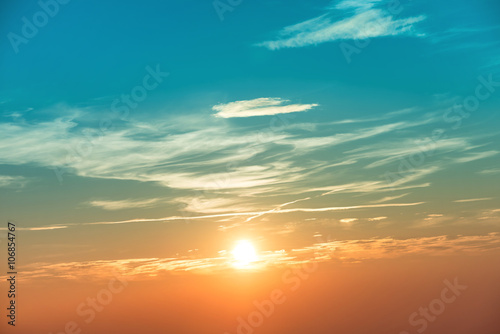 Obraz premium Sunset in the sky with blue orange clouds
