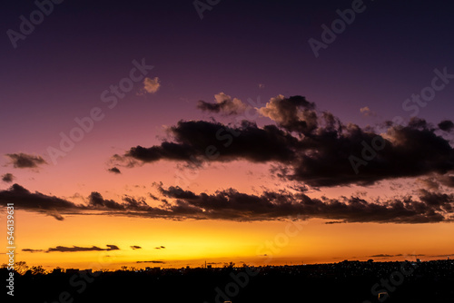 Fototapeta premium Sunset in the sky with clouds, Awesome epic landscape. Amazing vibrant colors im Brazil