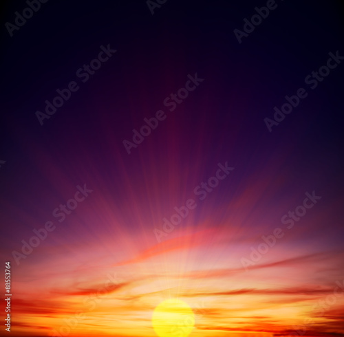 © Oleksii Akhrimenko, Naklejka premium sunset in the village, in red colors