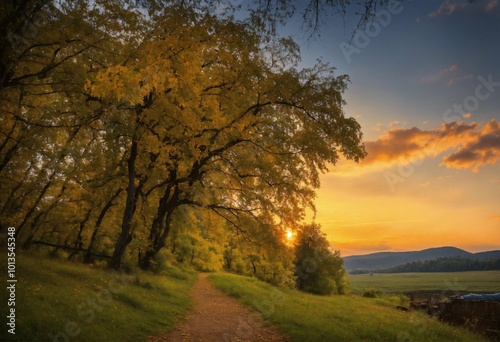 © Roman, Obraz premium Sunset in the woods, AI generated