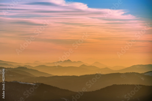 © Pavlo Vakhrushev, Fototapeta premium Sunset in winter mountains