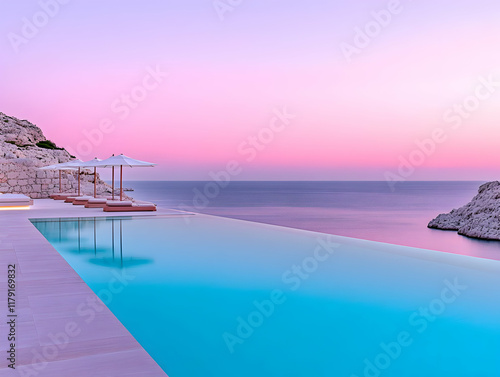 © share, Obraz premium Sunset Infinity Pool Illustration