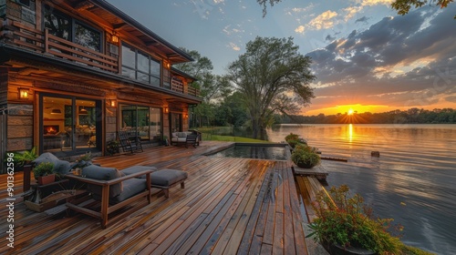 Obraz premium Sunset Lake House
