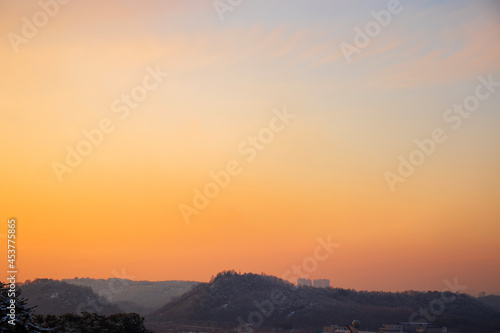 Obraz premium Sunset Landscape : Beautiful sunset sky and snow-covered mountains in winter.