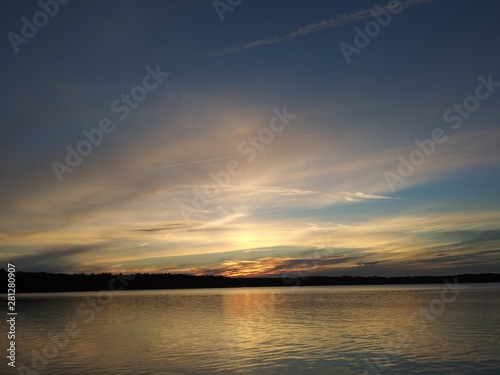 © Abraham, Obraz premium sunset landscape in the beach, with a blue sky,and a deep blue lake