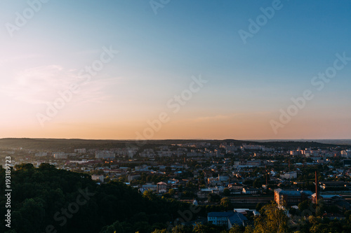 © Romvy, Fototapeta premium Sunset landscape over the city
