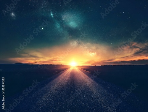 Fototapeta premium sunset landscape, starry sky, ocean horizon, warm colors, tranquil scene