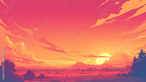 © realaji, Fototapeta premium Sunset Landscape With Vibrant Hues