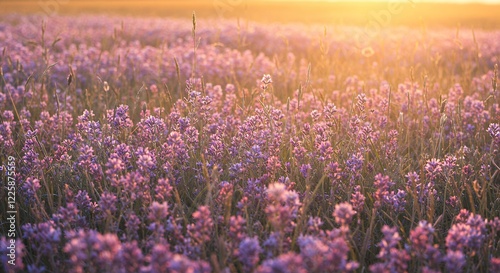 Naklejka premium Sunset Lavender Field Landscape Photography Image