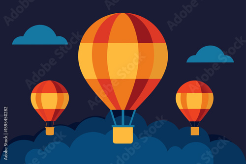 Fototapeta premium Sunset Light Behind Hot Air Balloons In Sky